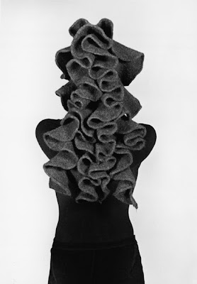 The work of textile designer and artist, Maria Blaisse can be understood as sculptures or costumes. In many cases, it is difficult to determine which is in control: the body or the form. Perhaps more clearly than any other artist, Blaisse resides firmly between the disciplines of art, design, textiles, and fashion. Her work is an investigation of form and material.