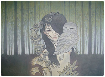 Art Nouveau, the figures she paints are seductive and contain an air of melancholy. They exist in their own sensually esoteric realm, yet at the same time present a sense of accessibility that draws the observer to them. Talking about mysterious young women with bedroom eyes, loves it!